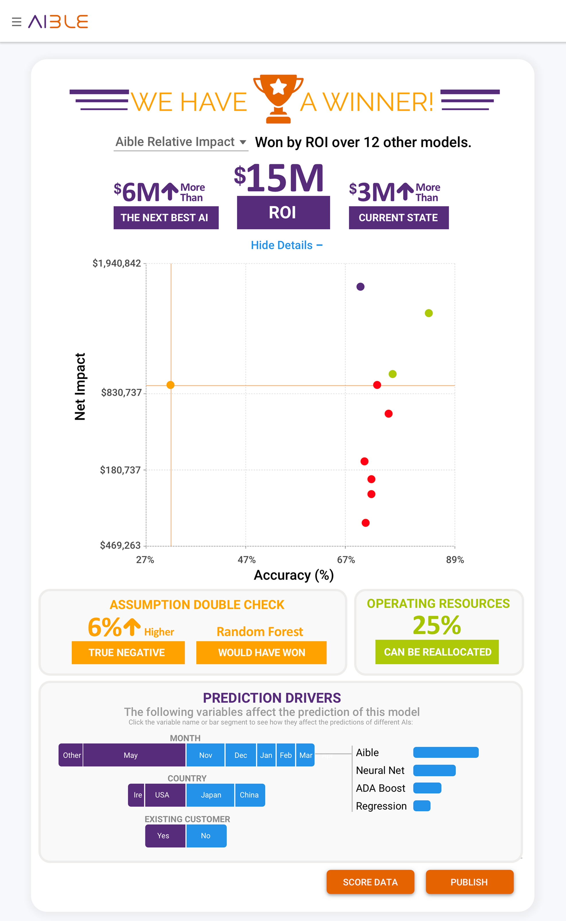 "Unique among AutoML vendors, Aible gets that a model that maximizes accuracy almost never maximizes business impact."