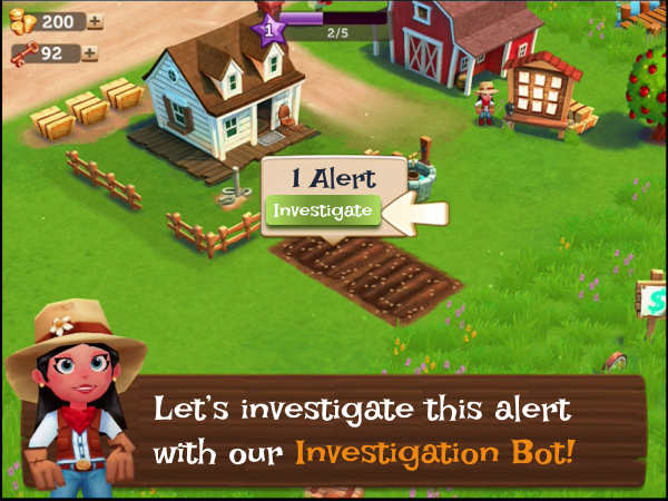 Farmville-style AI assistant — step-by-step guided workflow, waiting for user clicks to launch investigation, run each step, and generate the analysis.